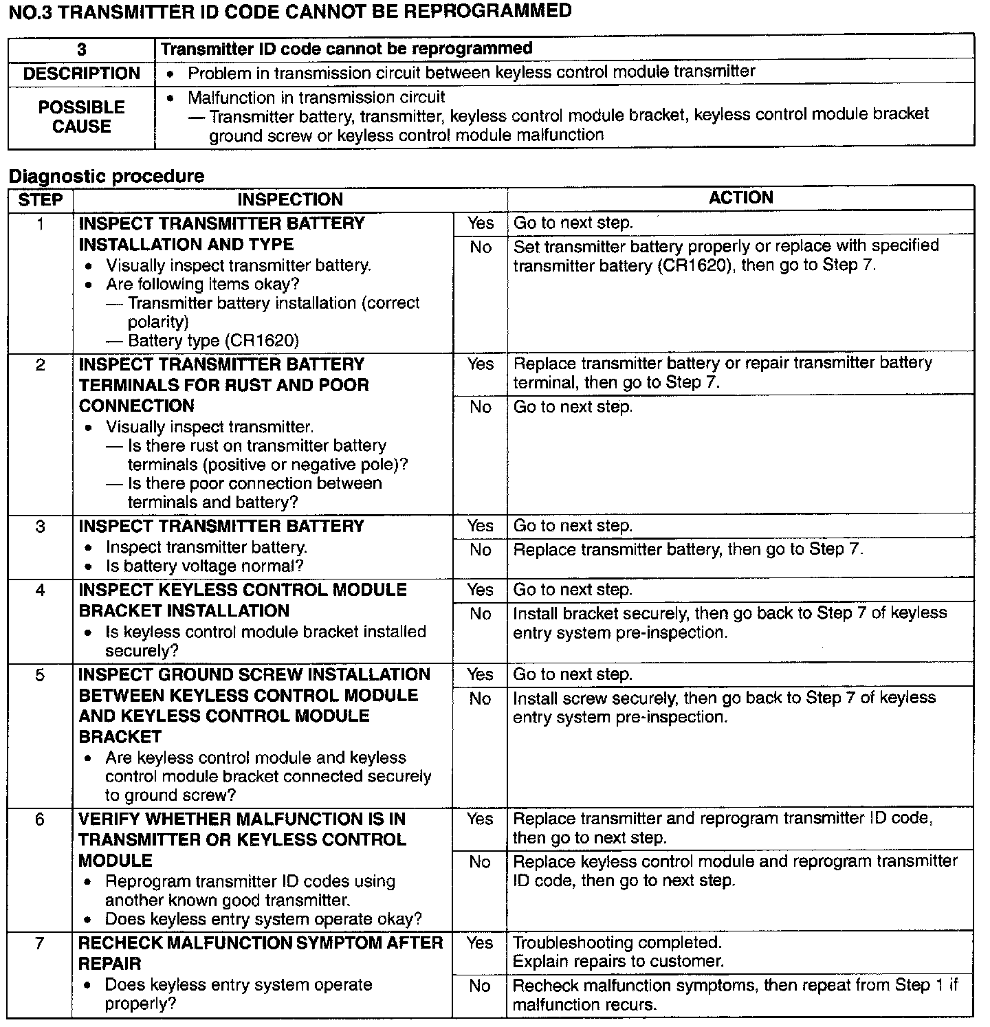 No.3 Transmitter ID Code Cannot Be Reprogrammed