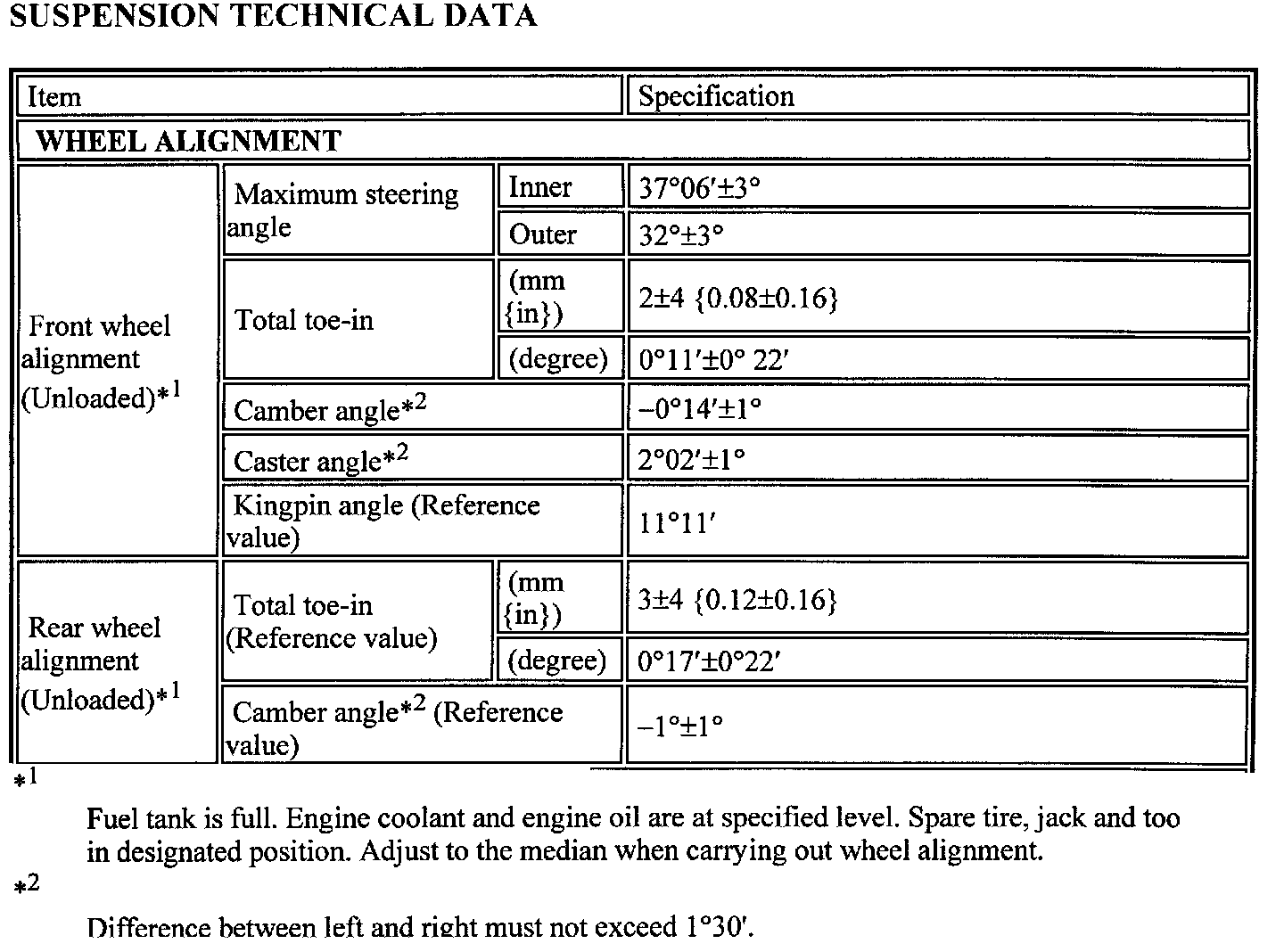 Alignment: Specifications