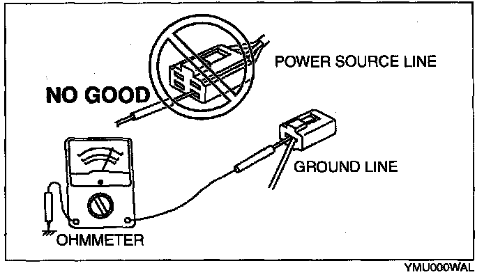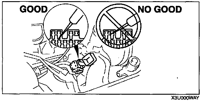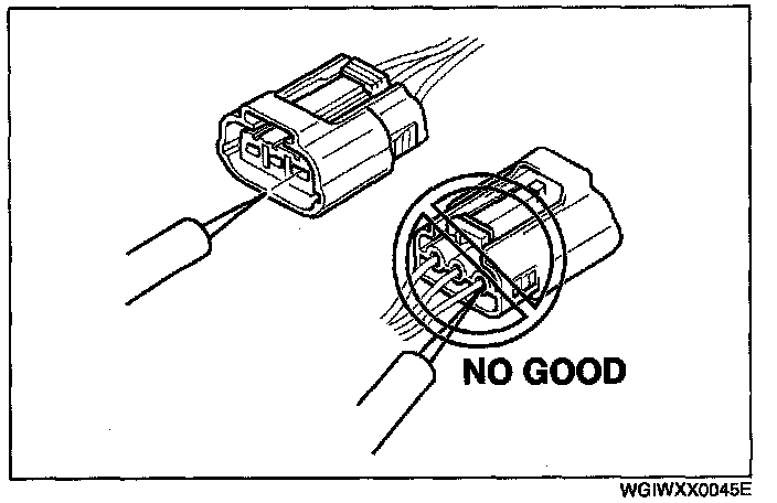 CAUTION To prevent damage to the terminal, wrap a thin wire around the tester probe before Inserting into terminal.