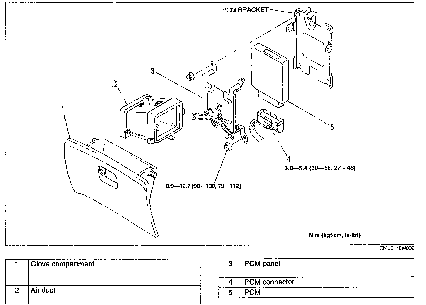 4. Remove four installation nuts, then pull the PCM panel down to remove from installation place.
