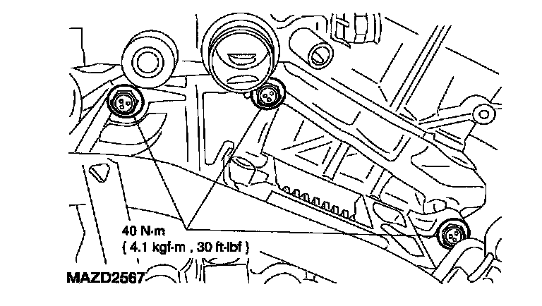 18. Install the two subframe side nuts.