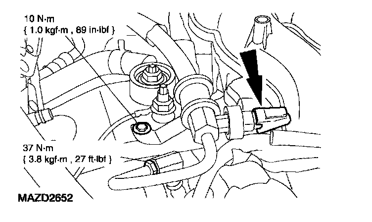 8. Install the EGR tube and connect the DPFE.