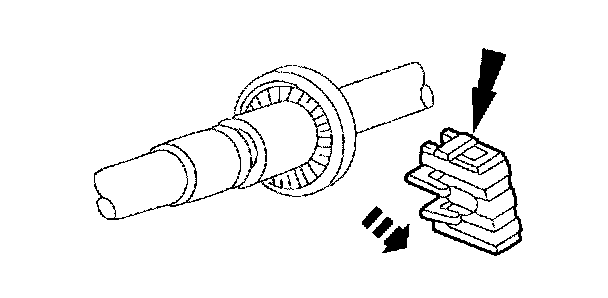 3. Push the tool into the cage opening to release the female fitting from the A/C tube lock coupling spring.
