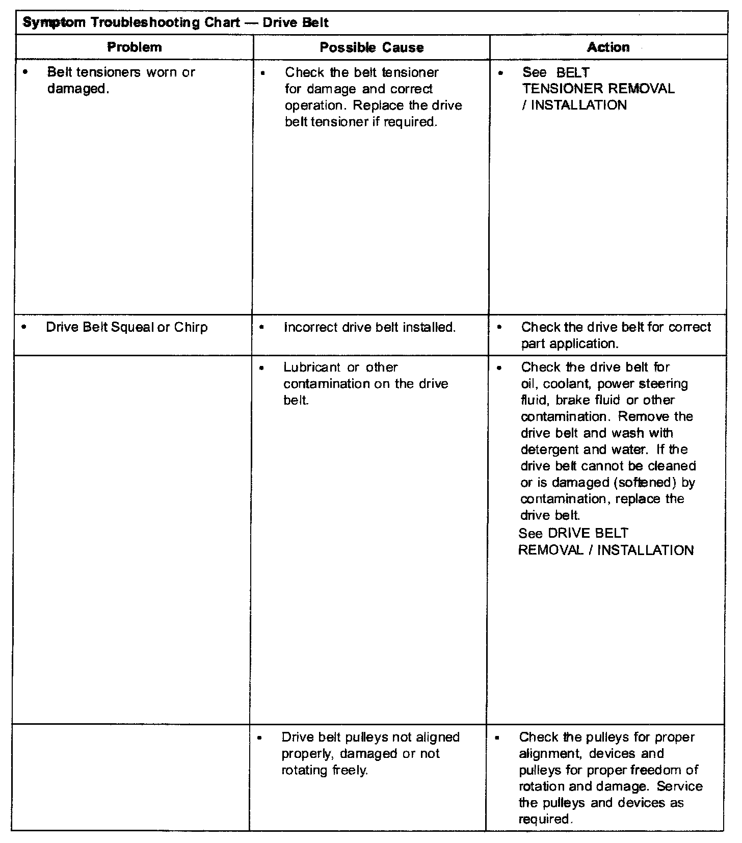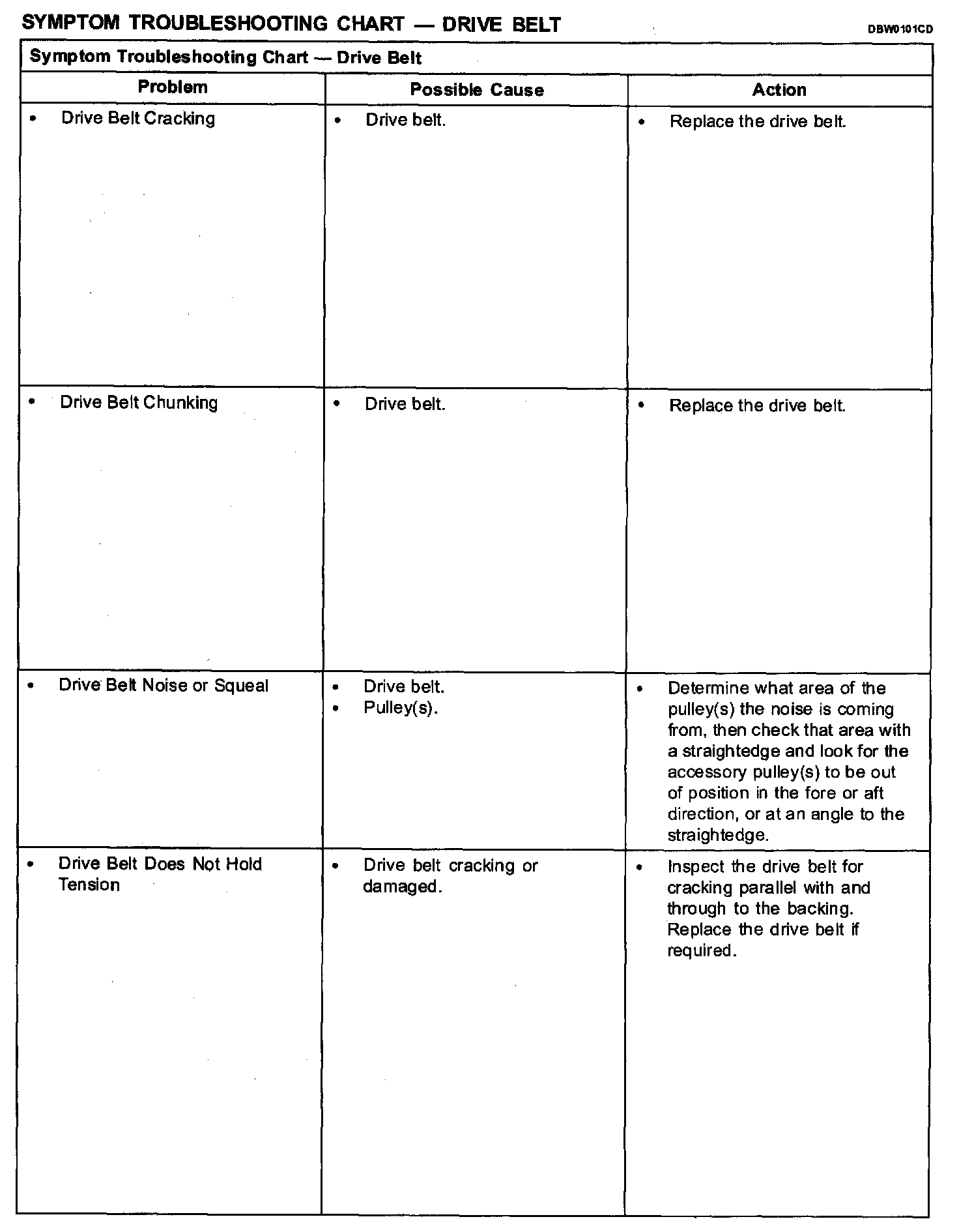 Symptom Troubleshooting Chart - Drive Belt Part 2: