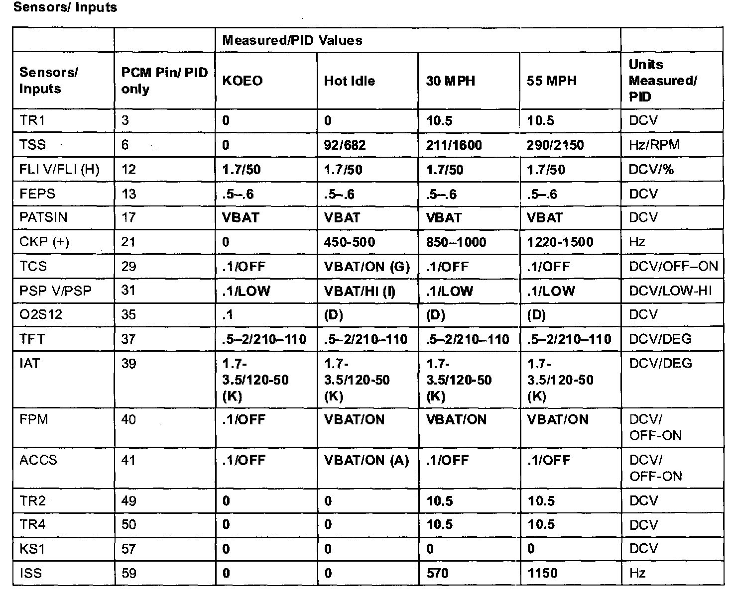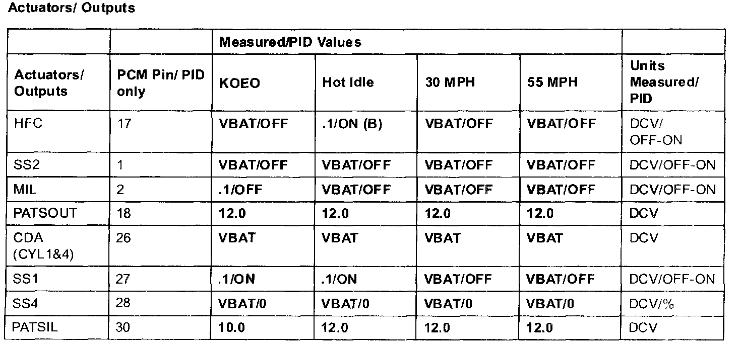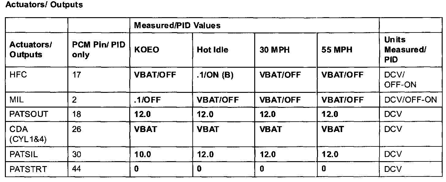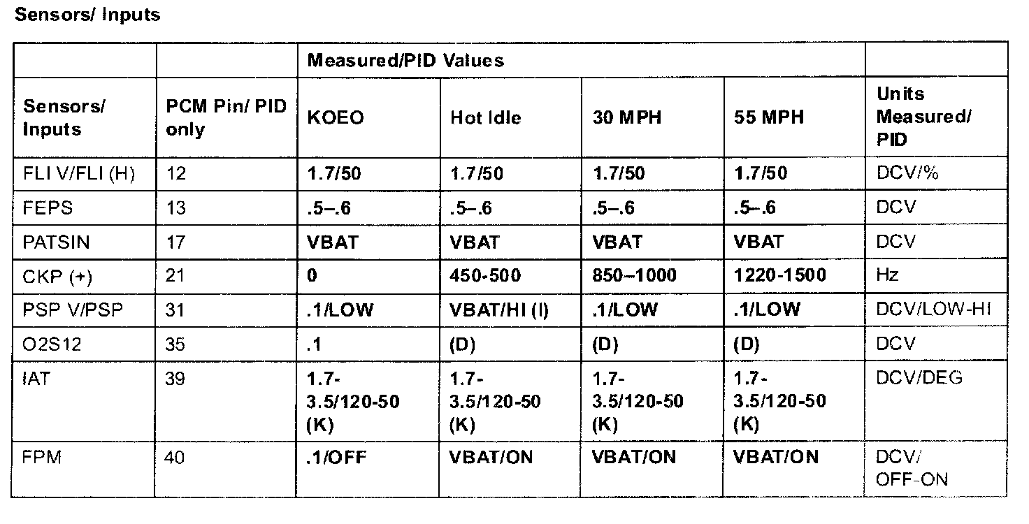 2.3L (M/T) Terminal Voltage (Reference)NOTE: All values shown may vary 20% depending on operating conditions and other factors. RPM values are axle and tire dependent.