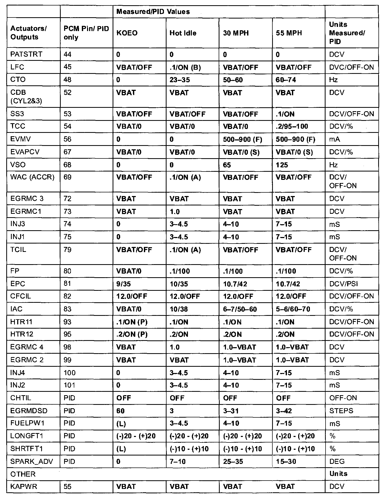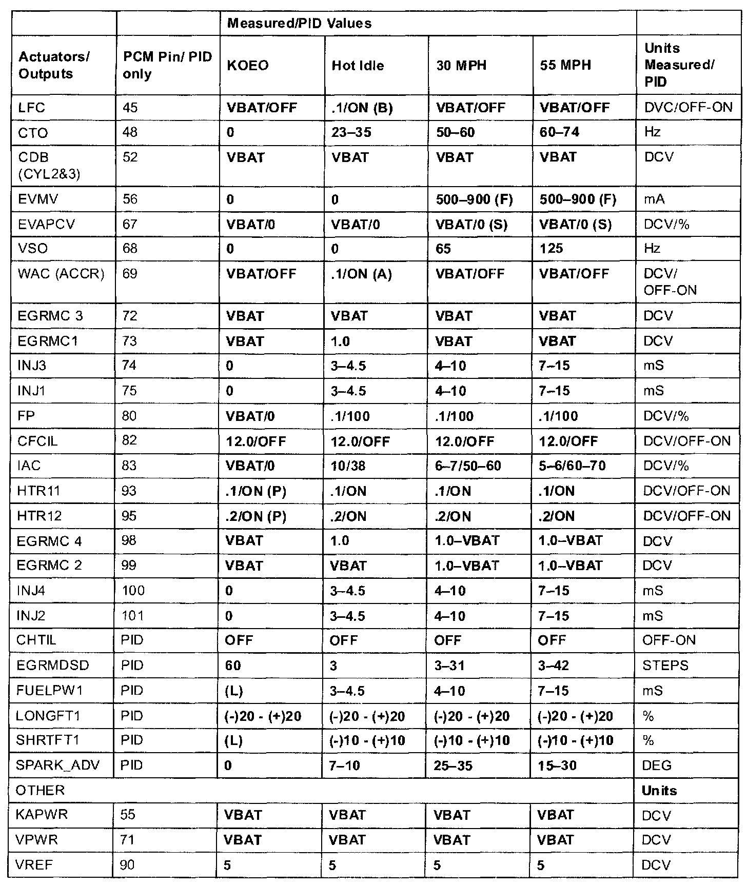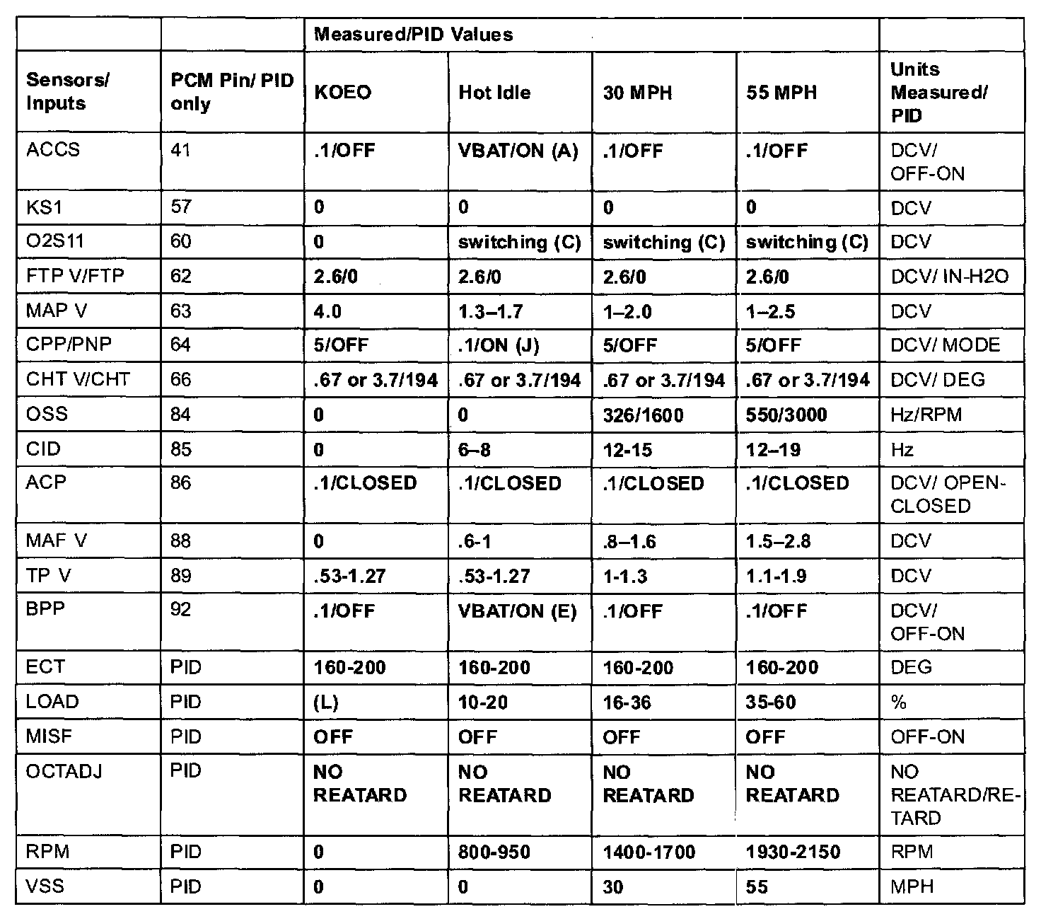 GENERIC OBD II PID VALUES