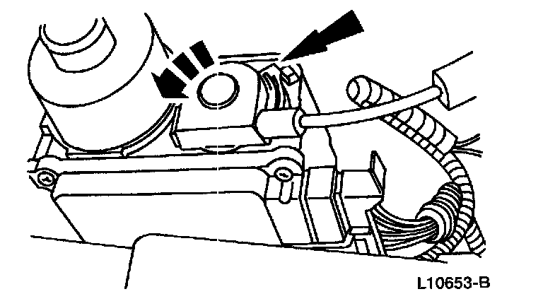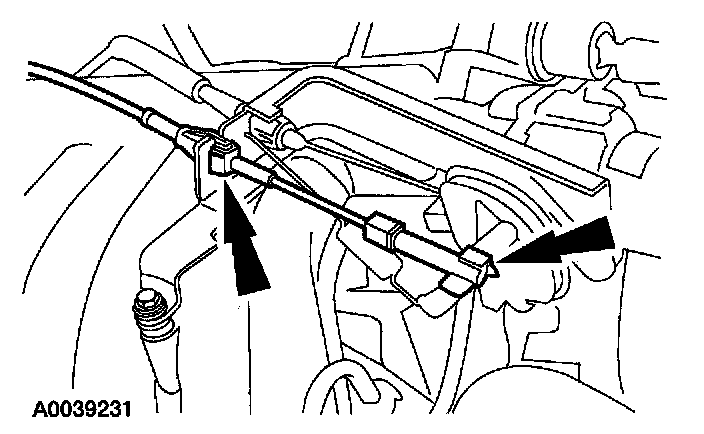 - Depress the locking tabs and separate the cruise control cable from the intake manifold.