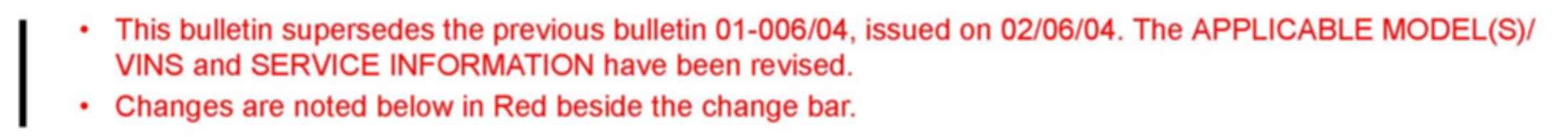 This bulletin is for information and diagnostic support only. Use existing warranty information for warranty repairs and claims.