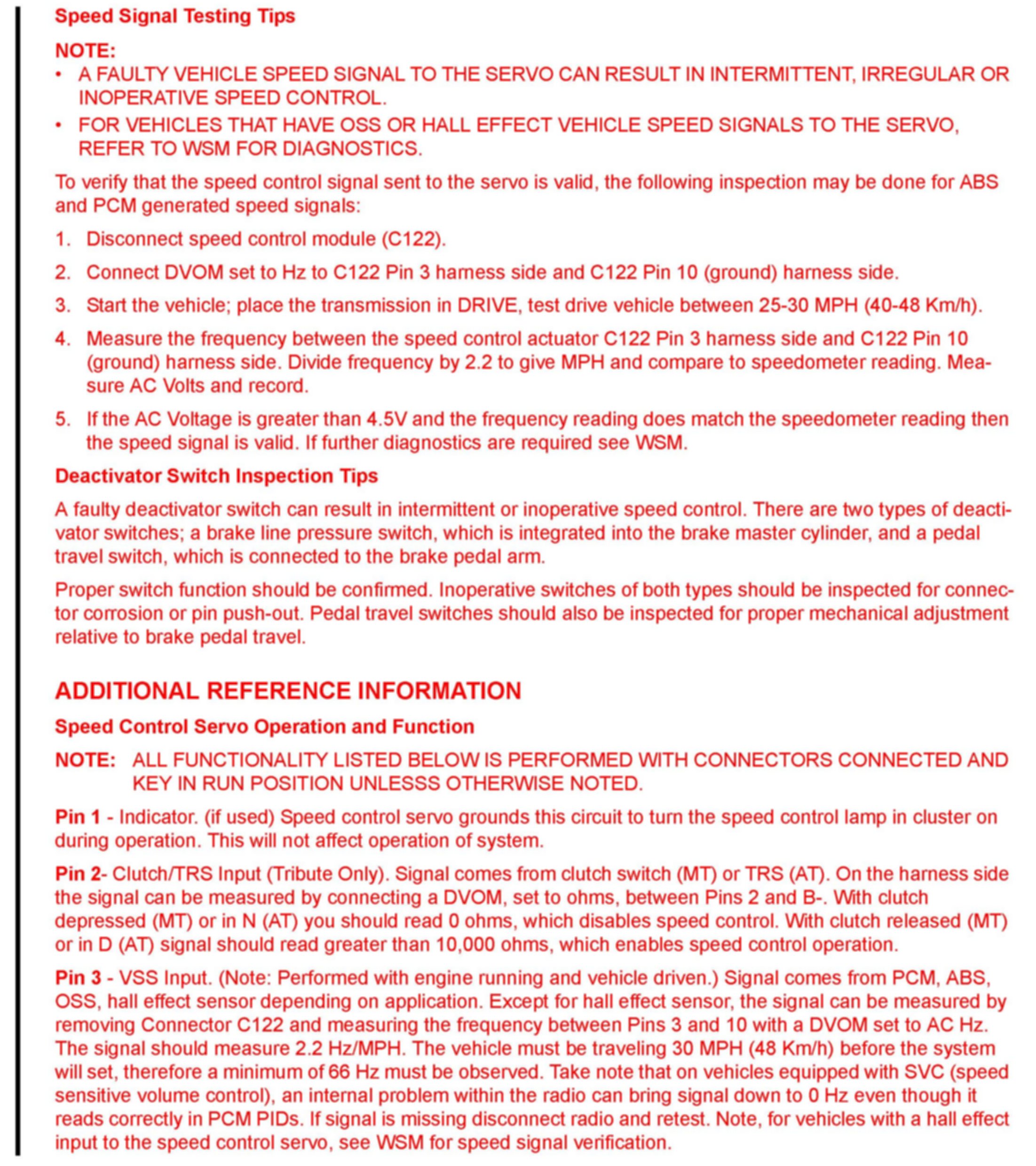 SPEED CONTROL DIAGNOSTICS