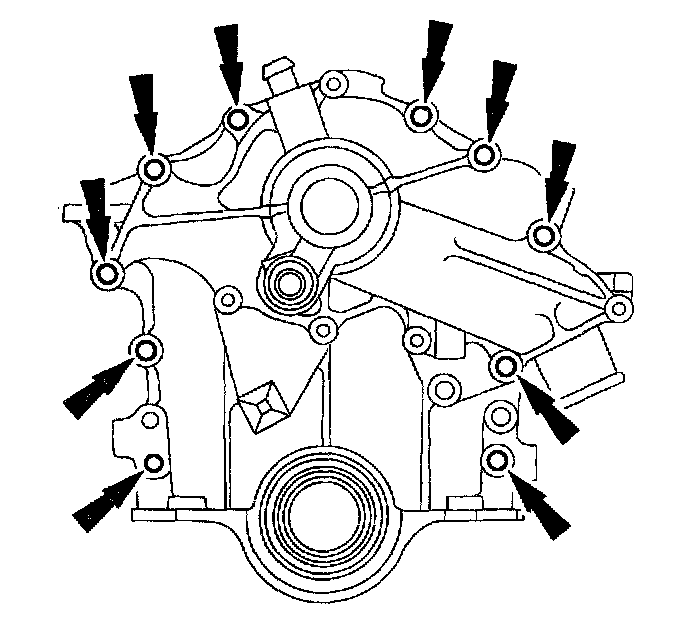 12. Remove the engine front cover and the water pump as an assembly.