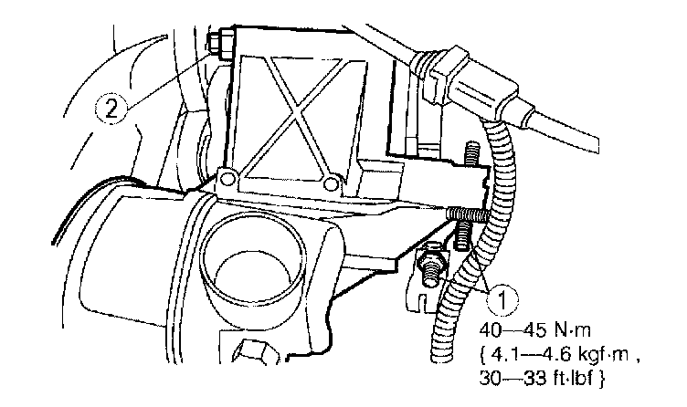 2. Remove the bolts and remove the A/C compressor mounting bracket