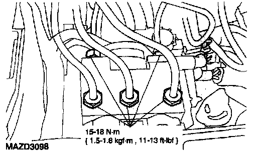Note: After removing the brake lines, cap the holes in the hydraulic control unit (HCU) to prevent dust or foreign matter from entering the brake line ports.
