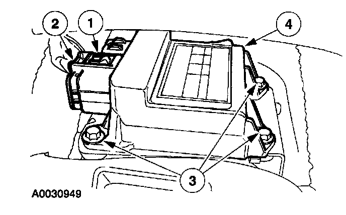 WARNING: The restraints control module (RCM) orientation is critical for proper air bag supplemental restraint system (SRS) operation. If a vehicle equipped with an SRS system has been involved in a collision in which the center tunnel area has been damaged, inspect the mounting and bracket for deformation. If damaged, the RCM must be replaced whether or not the air bags have deployed. In addition, make sure the area of the RCM mounting is restored to its original condition.