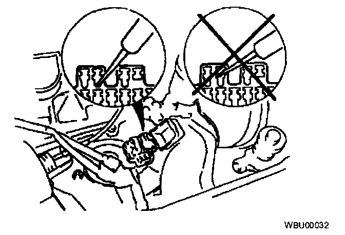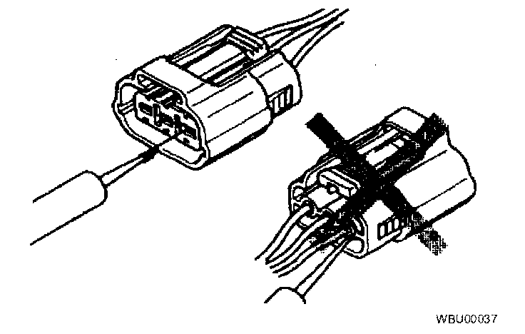 When a tester is used for checking continuity or measuring voltage, insert the tester probe from the wiring harness side.
