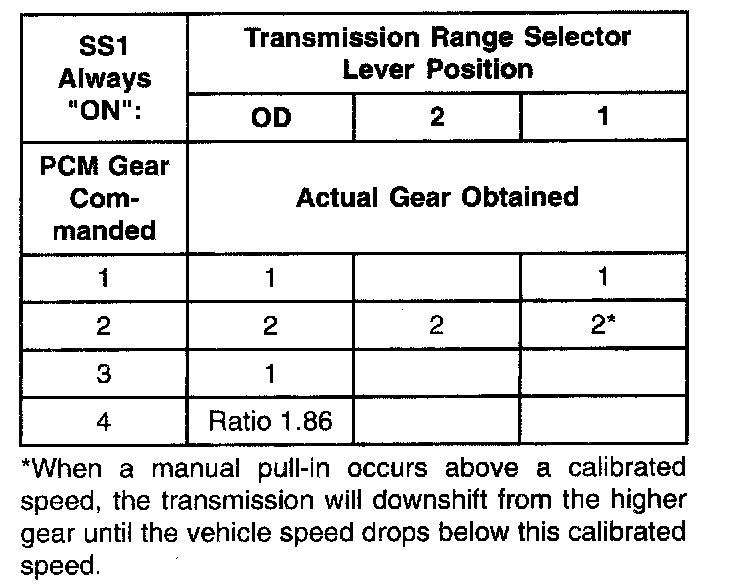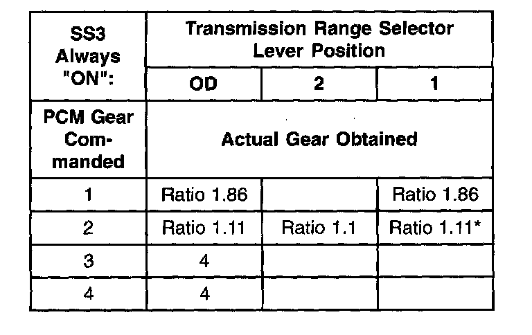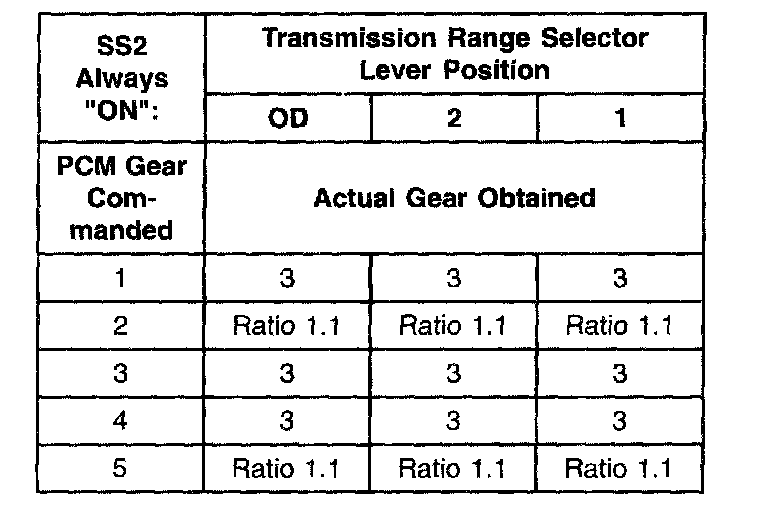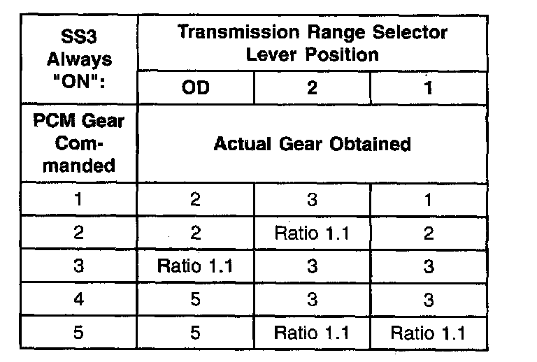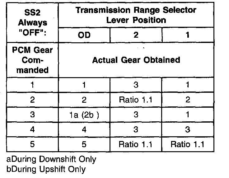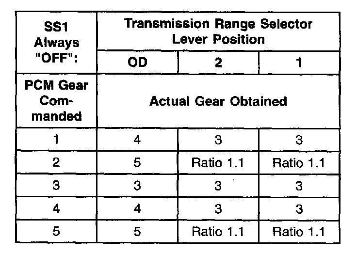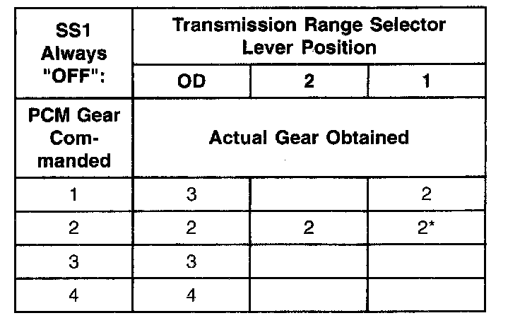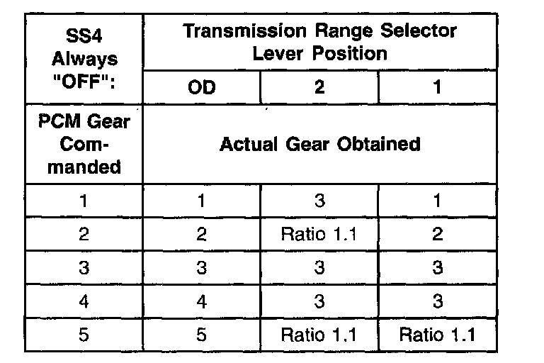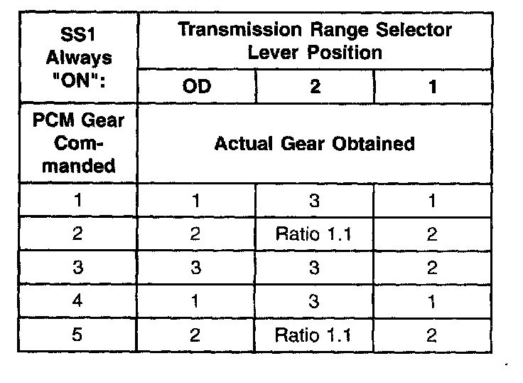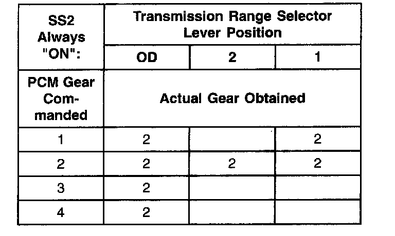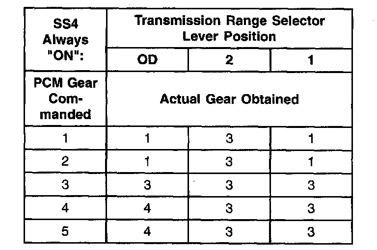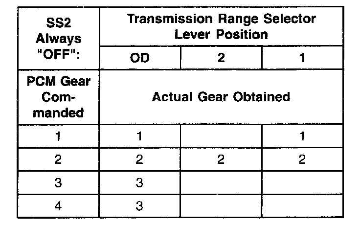 Shift Solenoid Failure Mode Chart "Always Off"