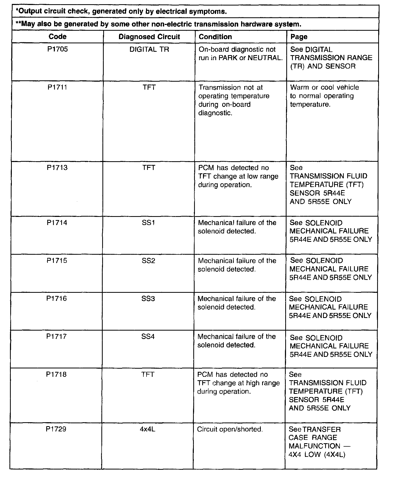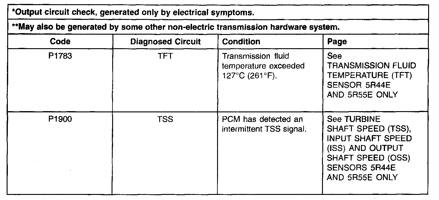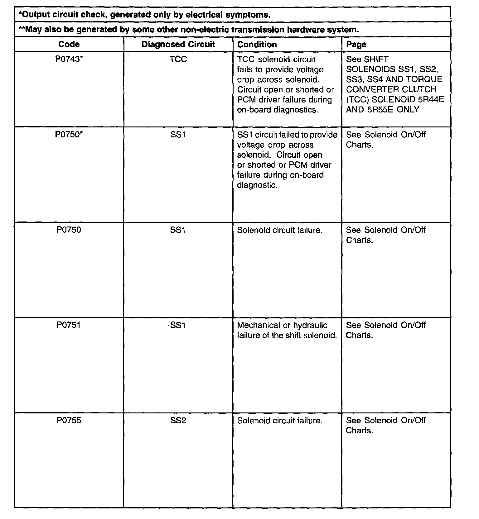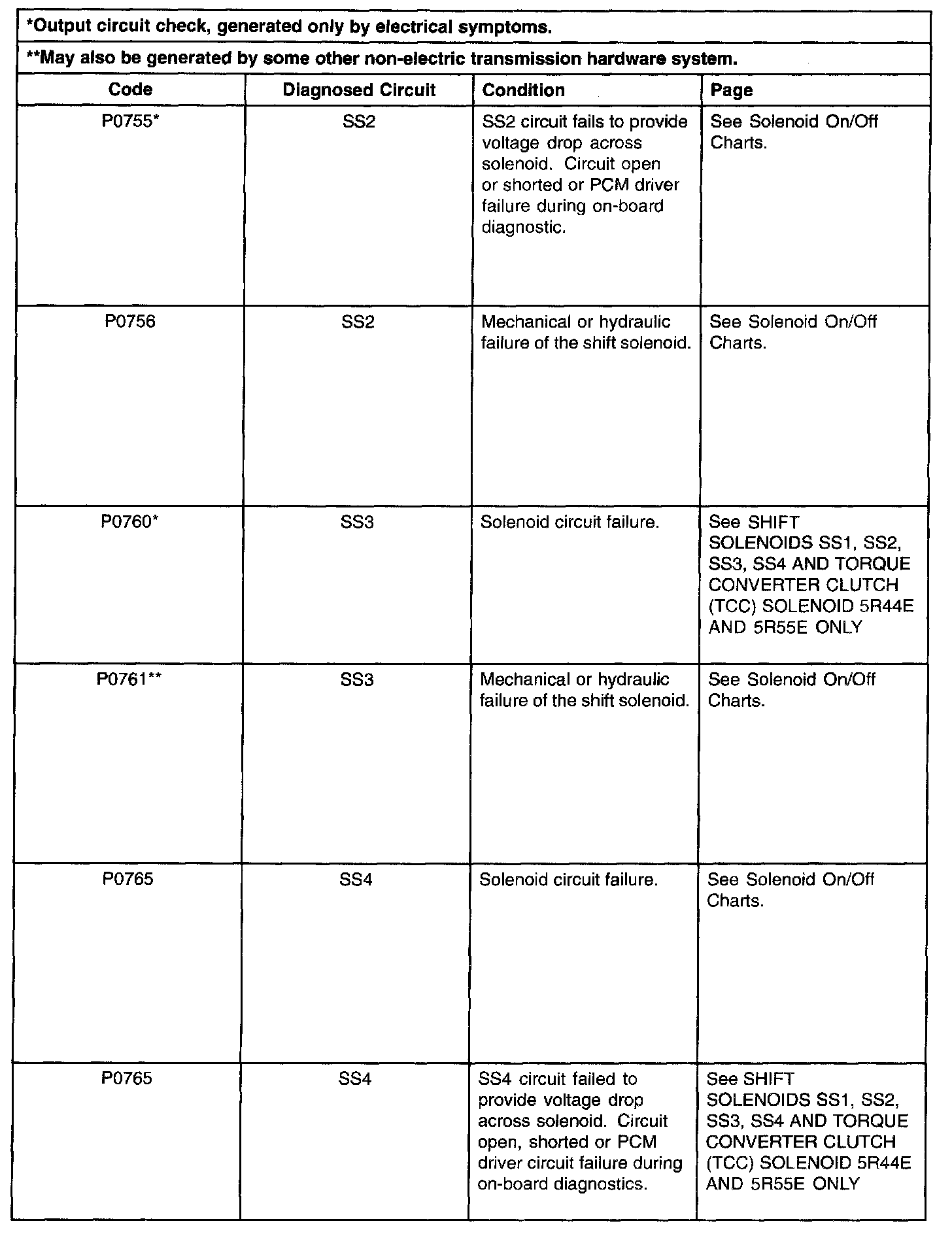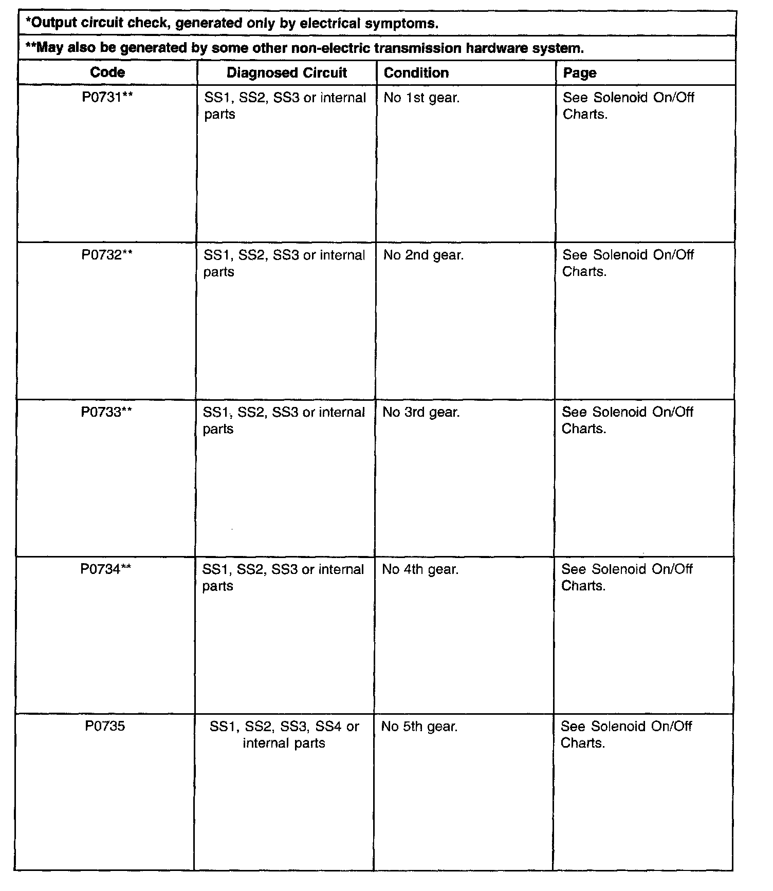 Shift Solenoid Failure Mode Chart "Always Off"