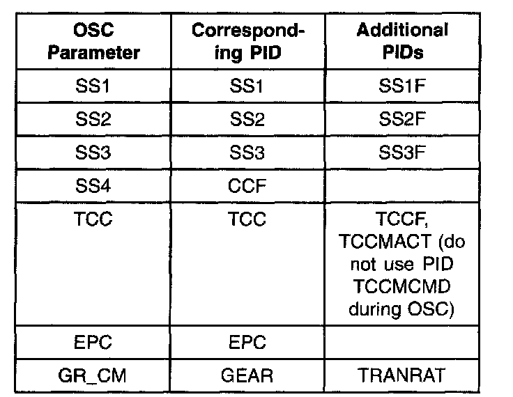 To confirm that the OSC value was sent by the WDS or equivalent tester and the PCM has accepted the OSC substitution, a corresponding PID for each OSC parameter must be monitored. Additional PIDs should be monitored to help the technician adequately diagnose the transmission.