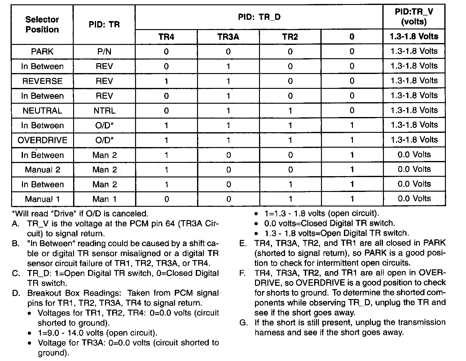 Digital Transmission Range (TR) Sensor Diagnosis Chart