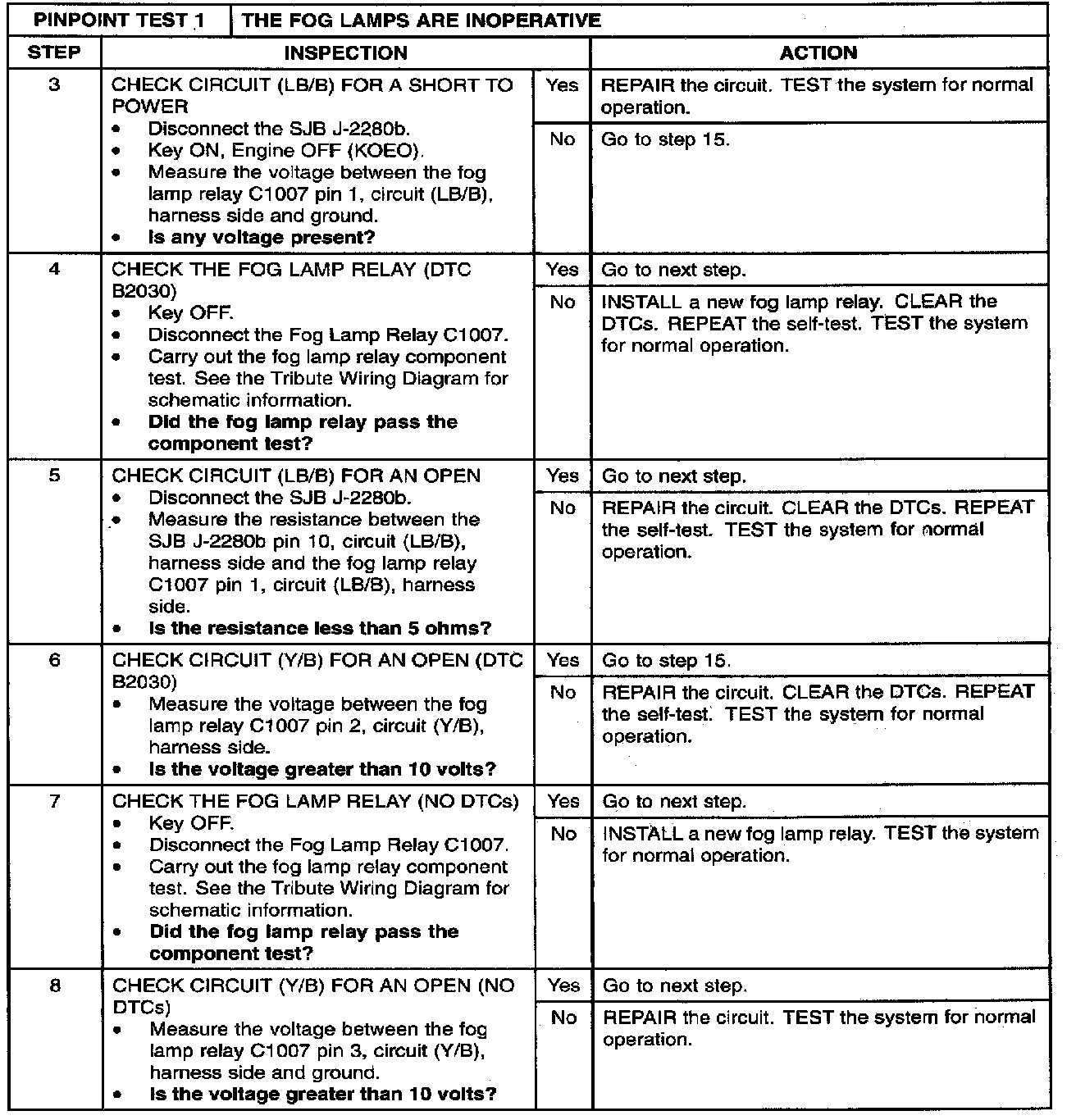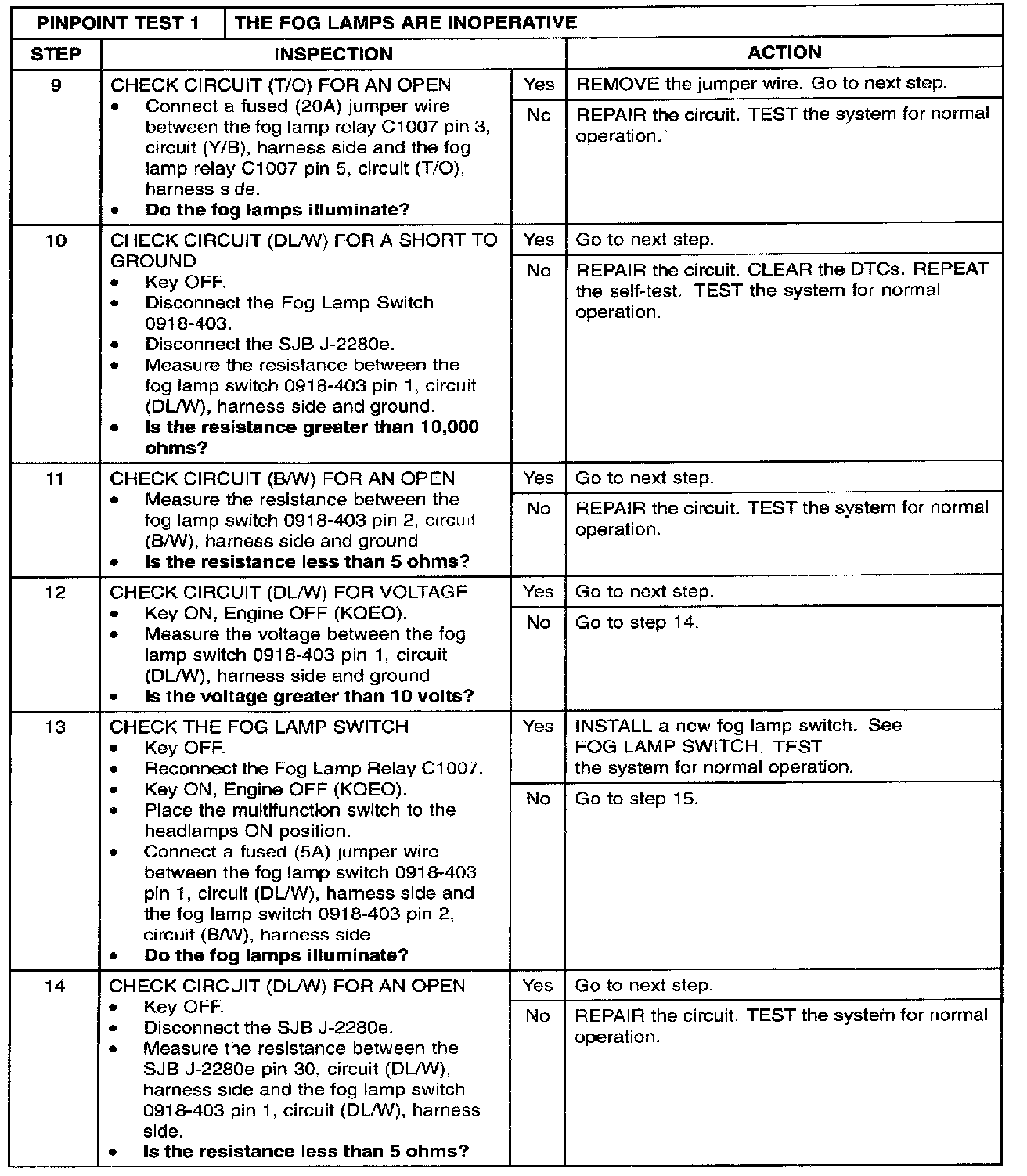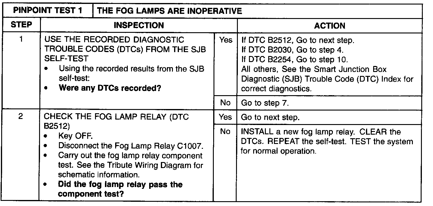PINPOINT TEST 1: THE FOG LAMPS ARE INOPERATIVEStep 1 - 2: