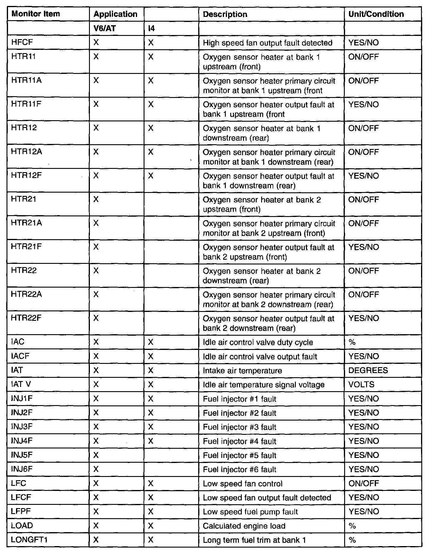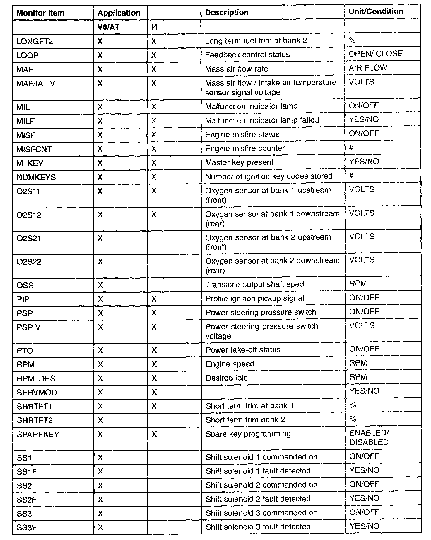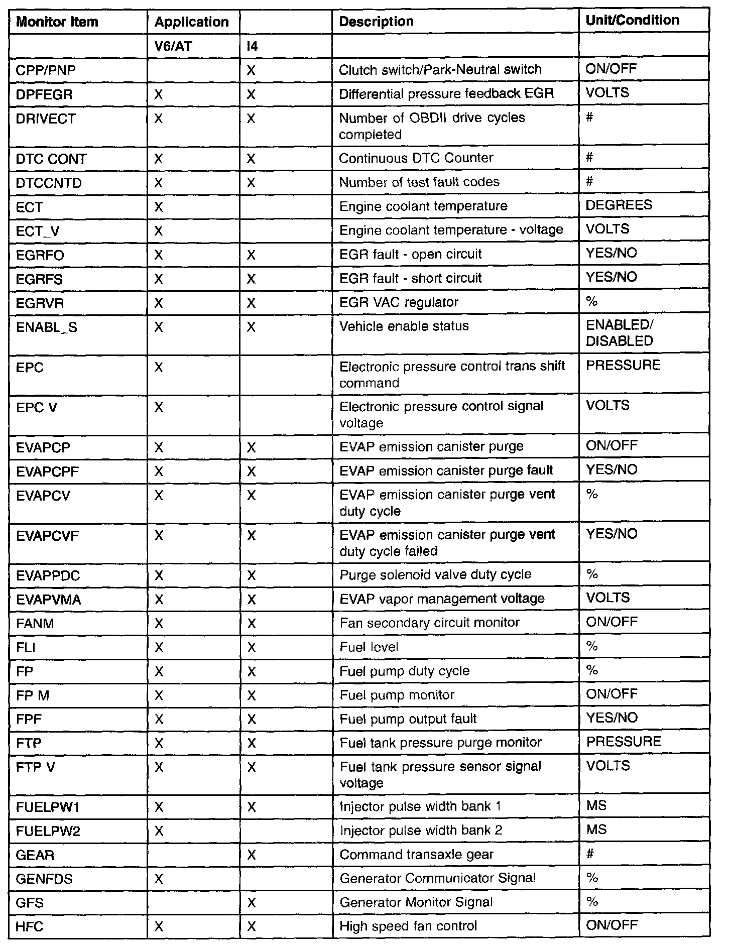 PID/Data Monitor Item Table Part 2: