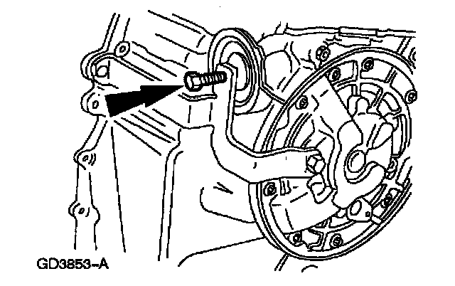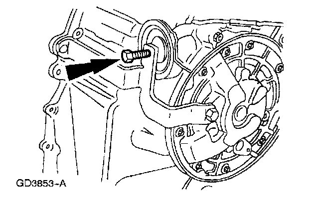4. Remove the transaxle cooler line bracket bolt and position the bracket out of the way.