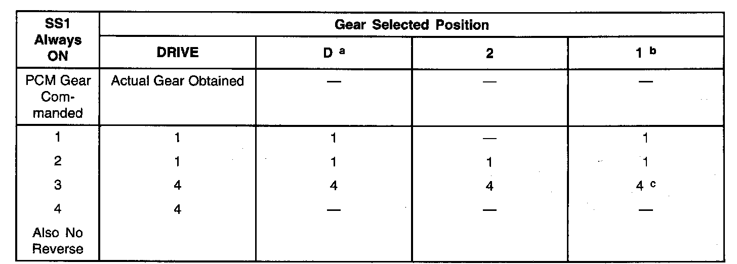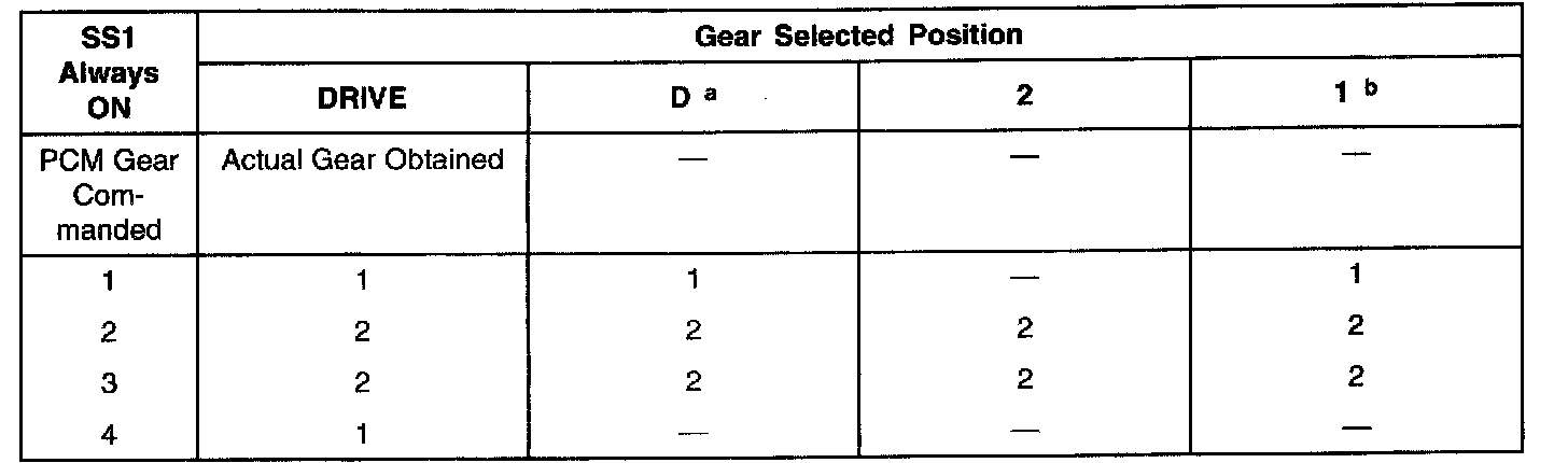 Shift Solenoid Failure Mode Chart Always ONFailed ON due to PCM and/or vehicle wiring concerns, and/or solenoid electrically stuck on, and/or hydraulically or mechanically stuck on.