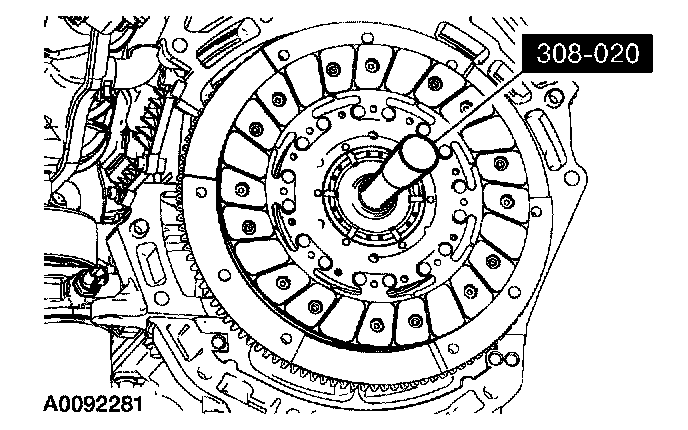 1. Using the special tool, position the clutch disc on the flywheel.