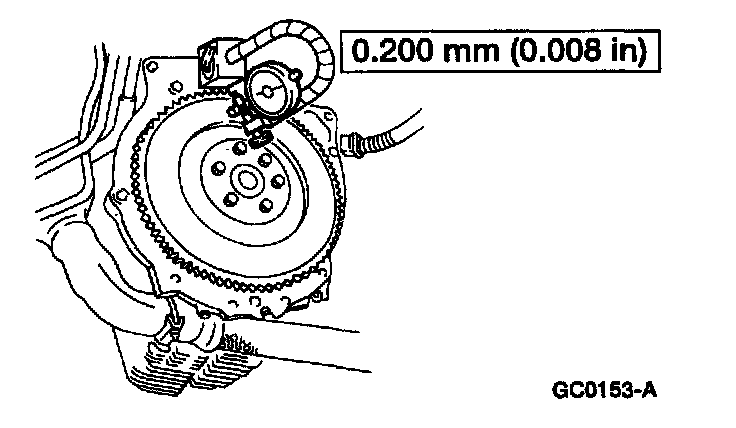 2. Rotate the flywheel and check the runout. If the runout exceeds the maximum allowance, install a new flywheel.
