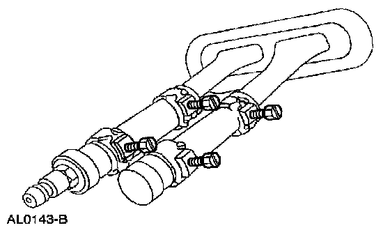 5. Install a short piece of heater water hose, approximately 101 mm (4 inches) long on each heater core tube.