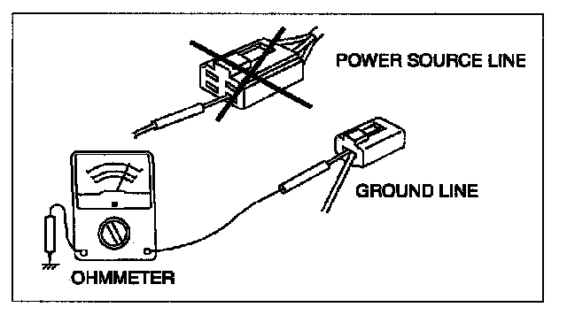 CAUTION: Do not connect the ohmmeter to any circuit where voltage is applied. This will damage the ohmmeter.
