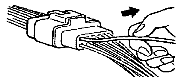 - Insert a thin piece of metal from the terminal side of the connector and with the terminal locking tab pressed down, pull the terminal out from the connector.