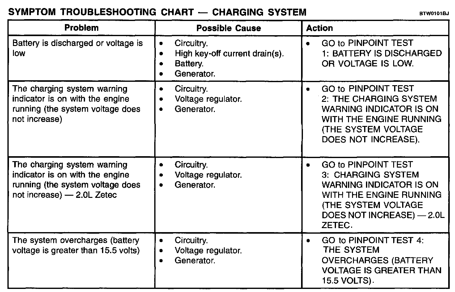 Symptom Troubleshooting Chart - Charging System Part 3: