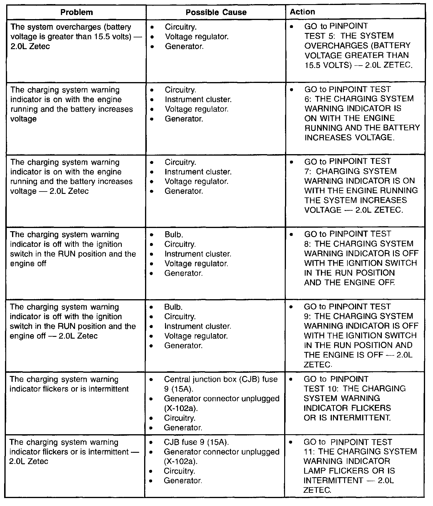 Symptom Troubleshooting Chart - Charging System Part 2: