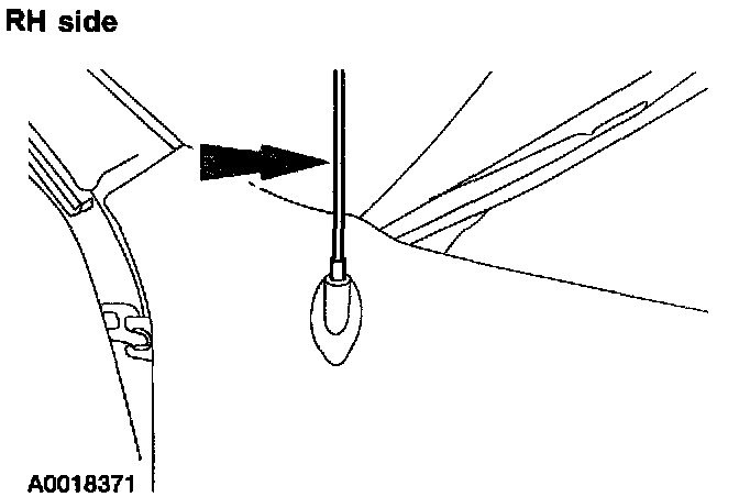 NOTE: On the RH side, the antenna base is mounted to the body, inside the fender opening. The RH fender must be lifted over the base during removal.