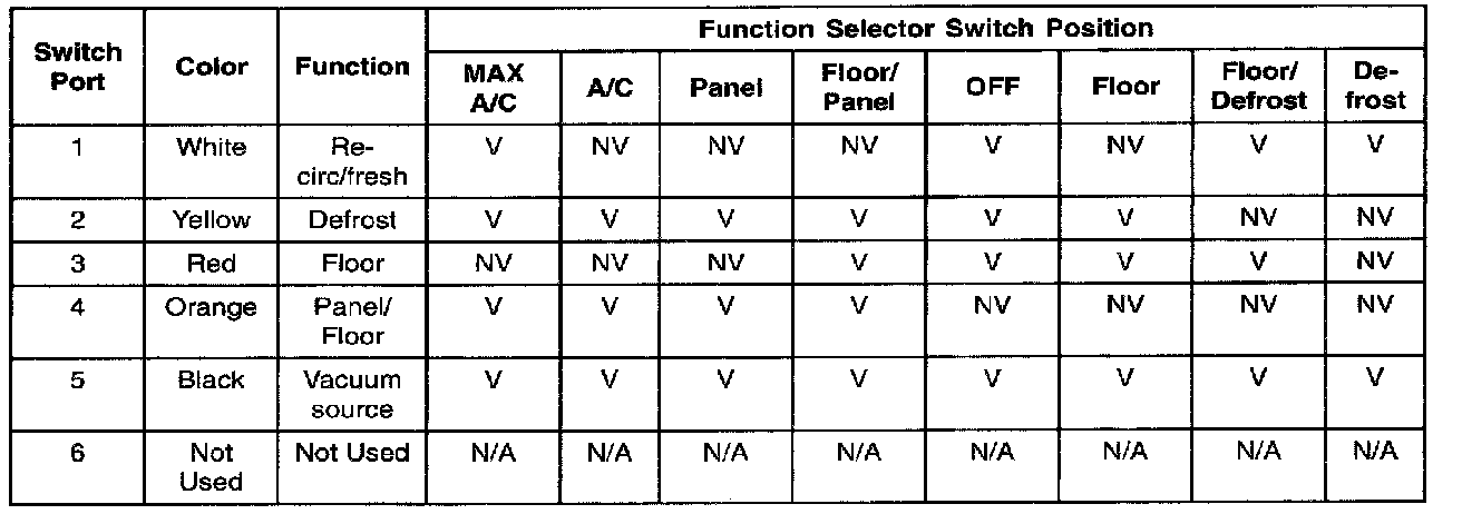 Function Selector Switch Vacuum ConnectorFunction Selector Switch Vacuum Application Chart