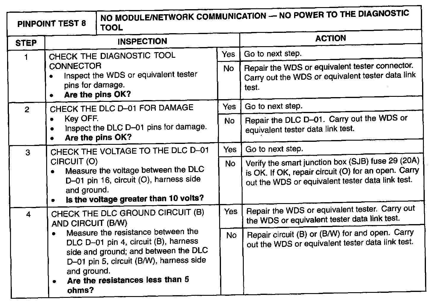 PINPOINT TEST 8: NO MODULE/NETWORK COMMUNICATION - NO POWER TO THE DIAGNOSTIC TOOLNormal Operation