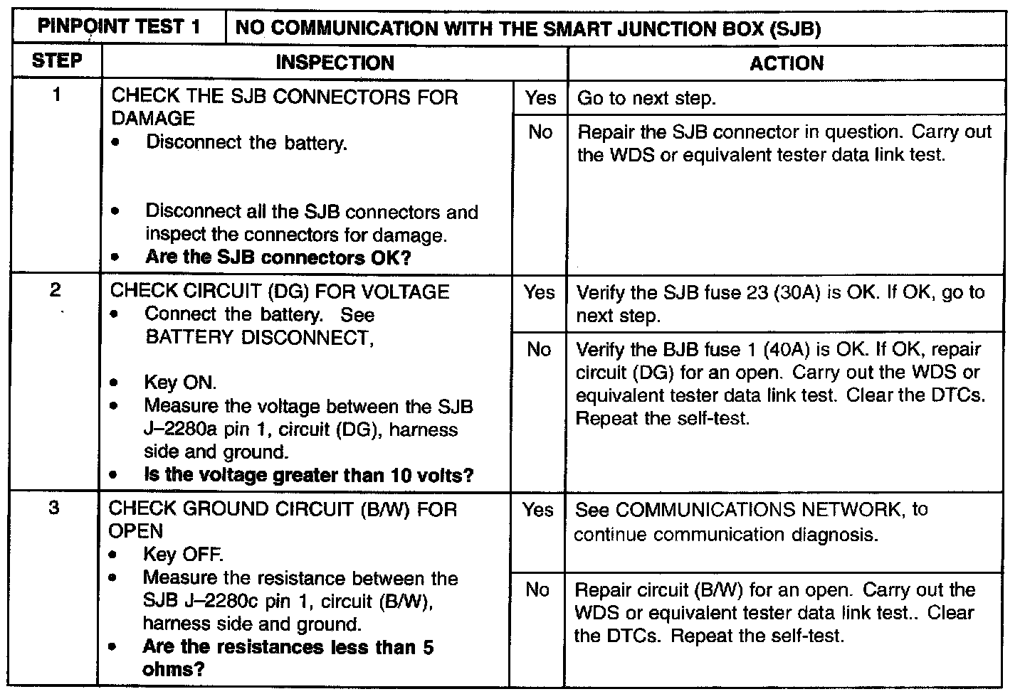 PINPOINT TEST 1: NO COMMUNICATION WITH THE SMART JUNCTION BOX (SJB)Normal Operation