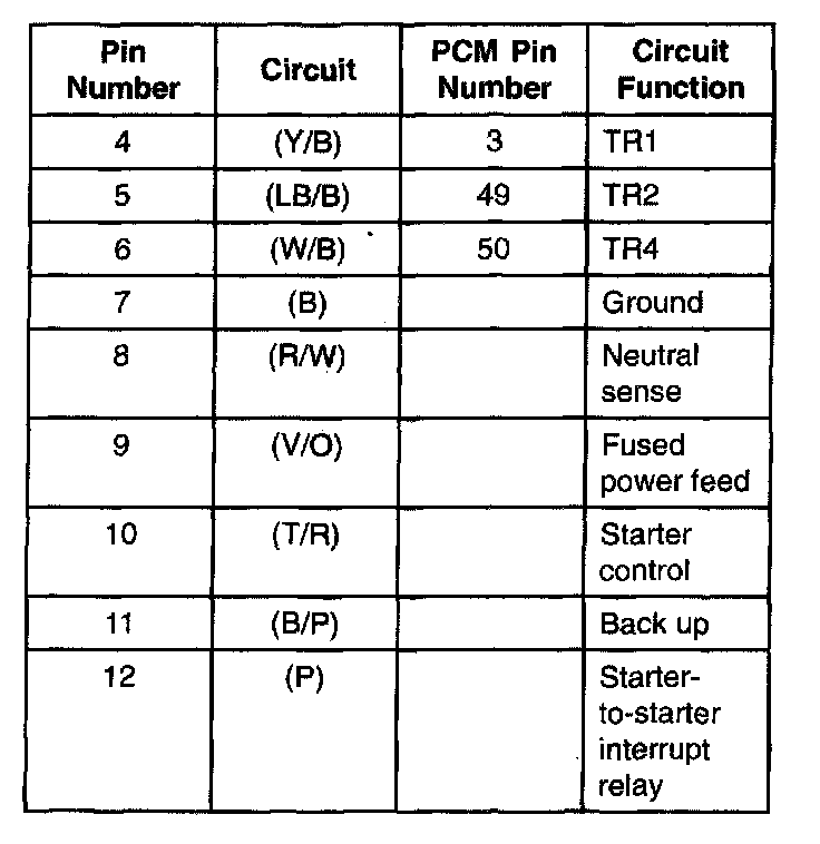 Digital Transmission Range (TR) Sensor Vehicle Harness Connector: