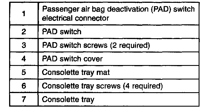 Passenger Air Bag Deactivation (PAD) Switch (Part 1):