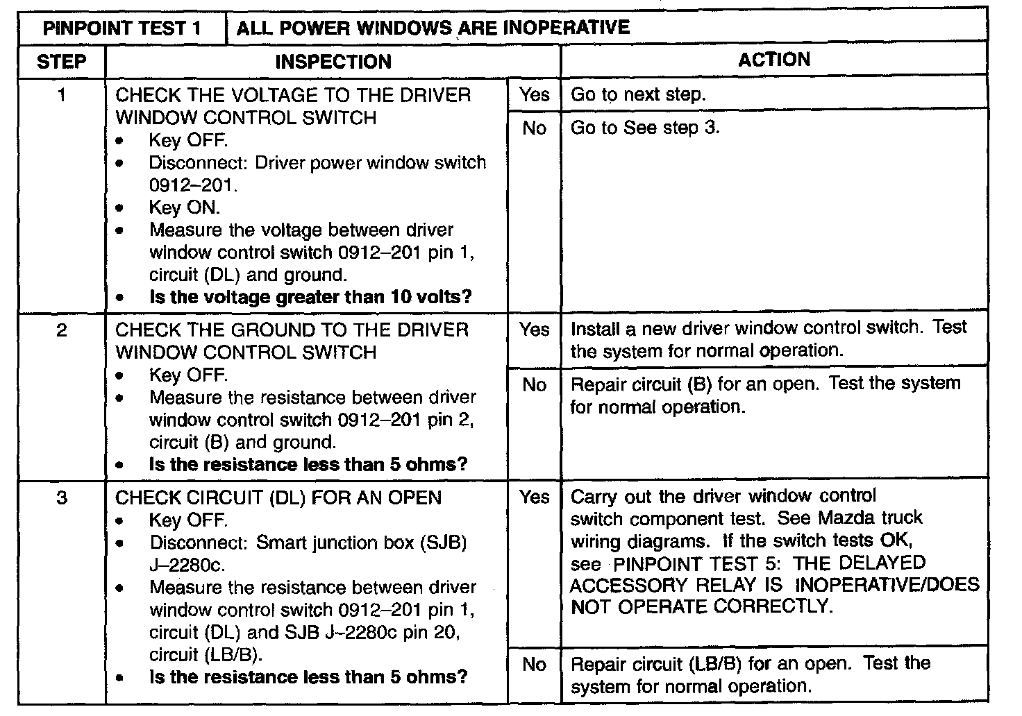 PINPOINT TEST 1: ALL POWER WINDOWS ARE INOPERATIVENormal Operation
