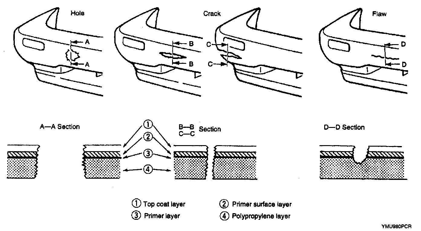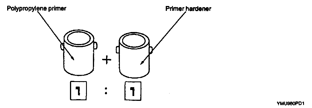 NOTE: Be sure to use only urethane primer for a urethane bumper and polypropylene primer for a polypropylene bumper. Other paints for repairing a polypropylene bumper are the same as those for the urethane bumper.