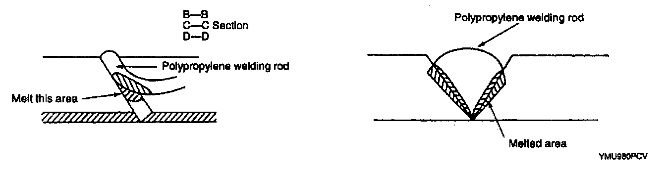 - Take care not to overly melt welding rod. If the part is welded with the welding rod melted like jelly, the welding strength will be reduced.