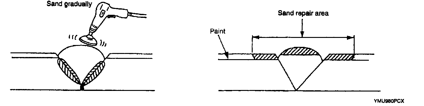 - If excessive force is applied to the area when sanding, the surface will be damaged.