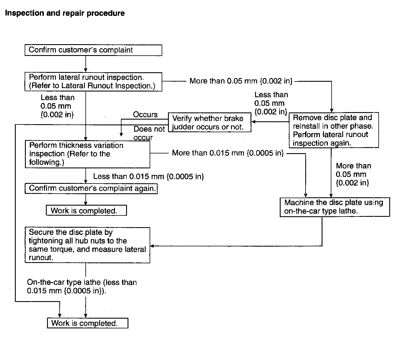 FRONT BRAKE (DISC) INSPECTIONBrake Judder Repair Hint