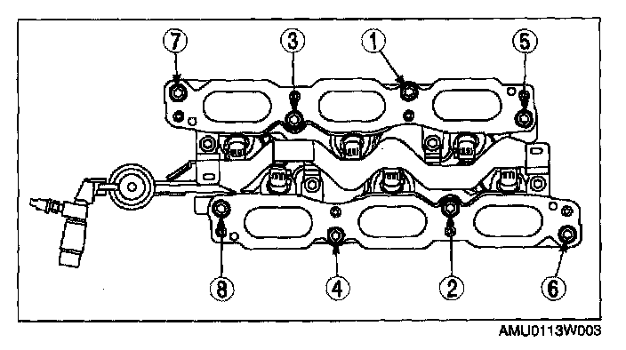 1. Tighten the intake manifold installation bolts in the order indicated.