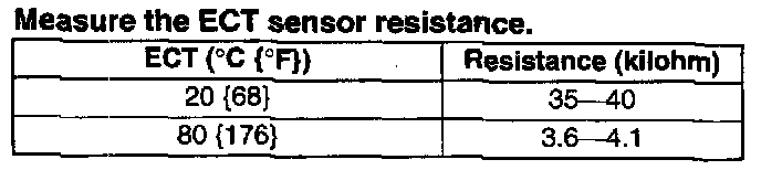 - If not as specified, replace the ECT sensor.
