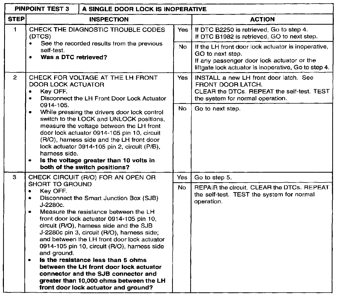 PINPOINT TEST 3: A SINGLE DOOR LOCK IS INOPERATIVEStep 1 - 3: