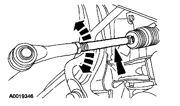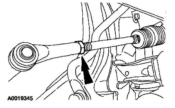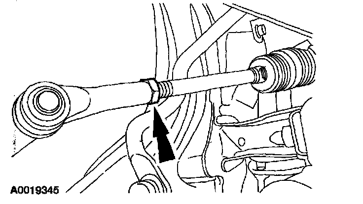 Note: Do not allow the steering gear bellows to twist when the front wheel spindle tie-rod is rotated.