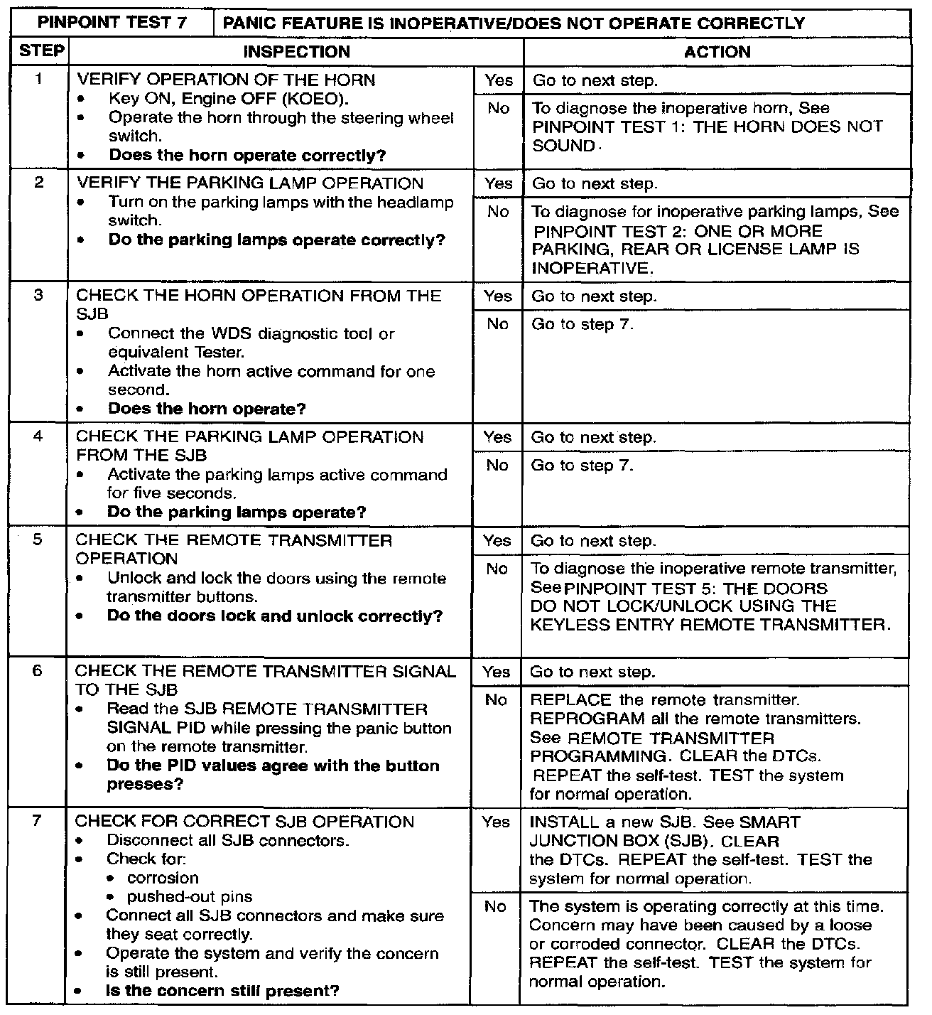 PINPOINT TEST 7: PANIC FEATURE IS INOPERATIVE/DOES NOT OPERATE CORRECTLYStep 1 - 7: