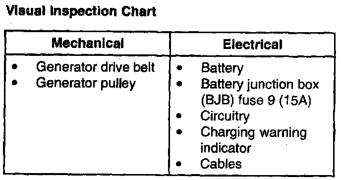 2. With the key ON and the engine OFF, the charging system warning indicator should be on.
